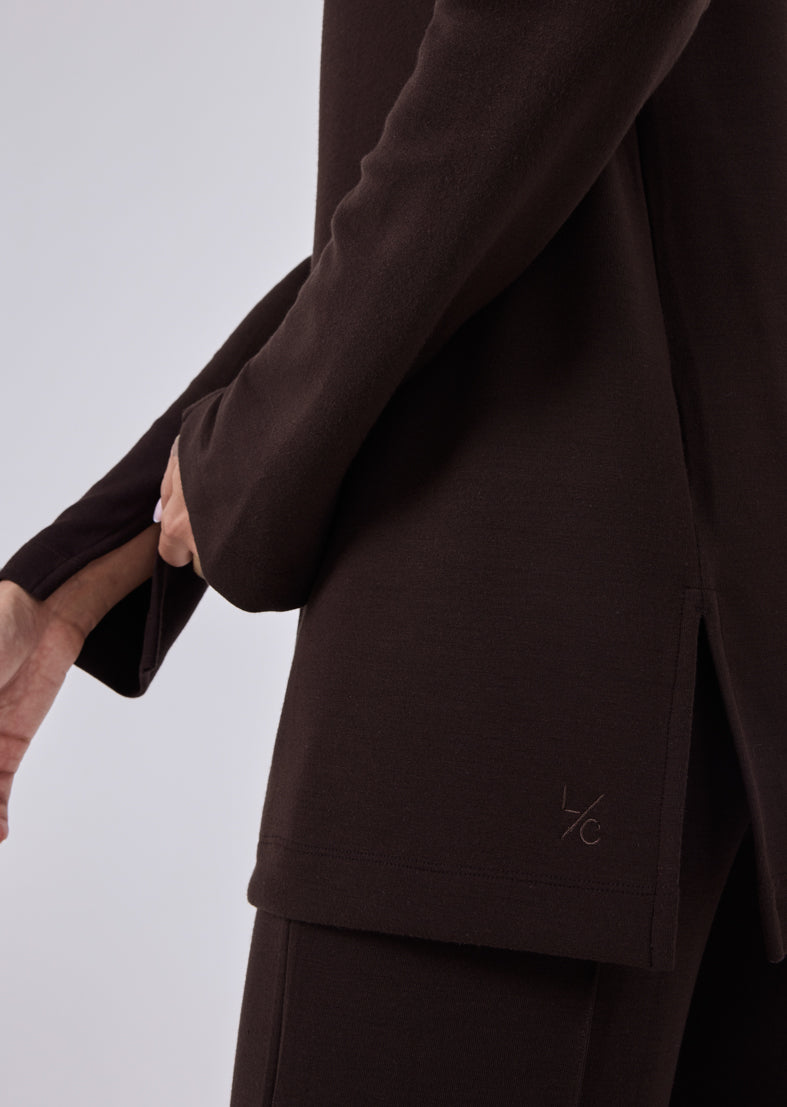 قطعة علوية بأكمام طويلة للنساء بلون بني داكن