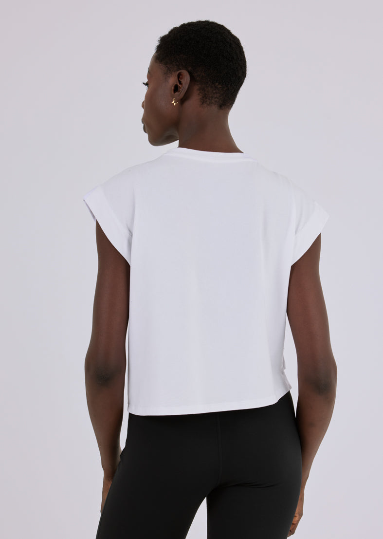 توب نسائي بدون أكمام بكسرات جانبية باللون الأبيض